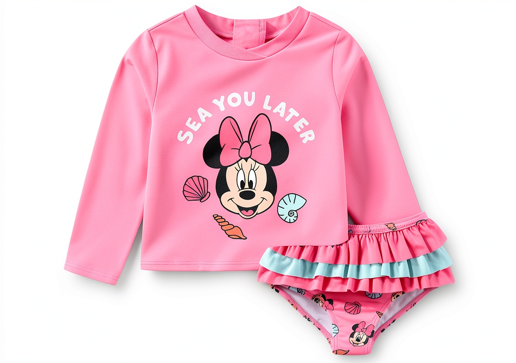 Ideal for infants aged 12 to 24 months, this rash guard set is perfect for summer vacations, beach days, surfing, and swimming adventures. The long sleeves provide added sun protection, allowing for endless fun in the sun without worries. Pair it with Minnie Mouse accessories like towels, sunglasses, slippers, and backpacks for a complete, coordinated look that makes dressing easy and hassle-free.
